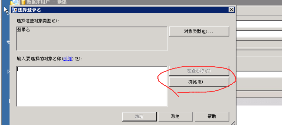 打开SQL Server登录属性对话框。在“常规”选项卡中,单击“名称”输入框右侧的按钮。