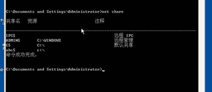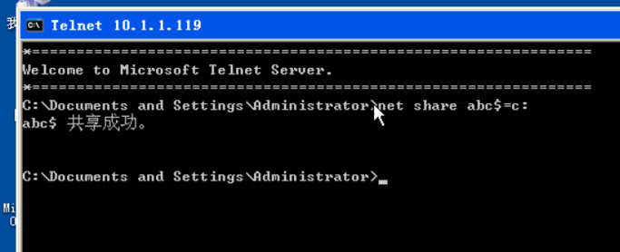 (9)登录后便可进行共享等相关操作,net share建立c$共享