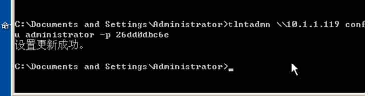 输入tlntadmn \\10.1.1.119 config port=1000 -u administrator -p 主机B的密码