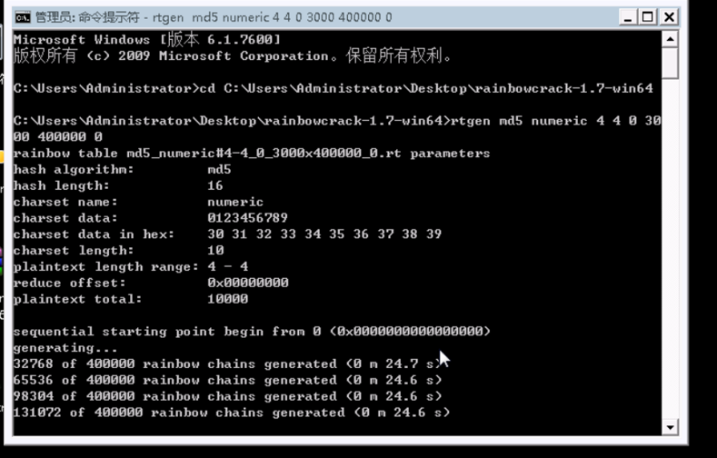 使用命令:rtgen md5 numeric 4 4 0 3000 400000 0