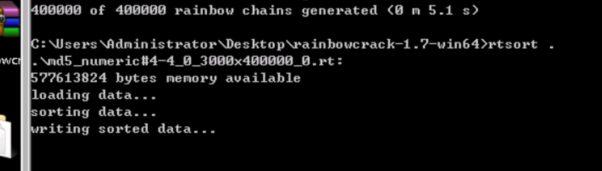 运行以下命令对当前目录中的所有.rt彩虹表进行排序: