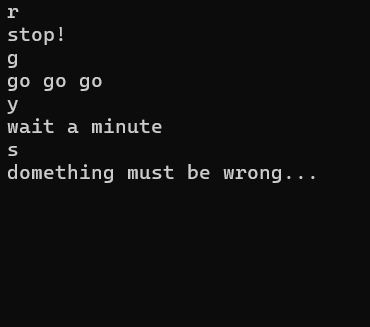case 'y':printf("wait a minute\n");break;