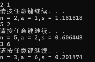 printf("n = %d,a = %d,s = %lf\n",n,a,s);
