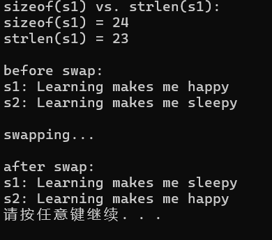 交换的是两个数组的地址,两个字符串在储存单元中没有交换