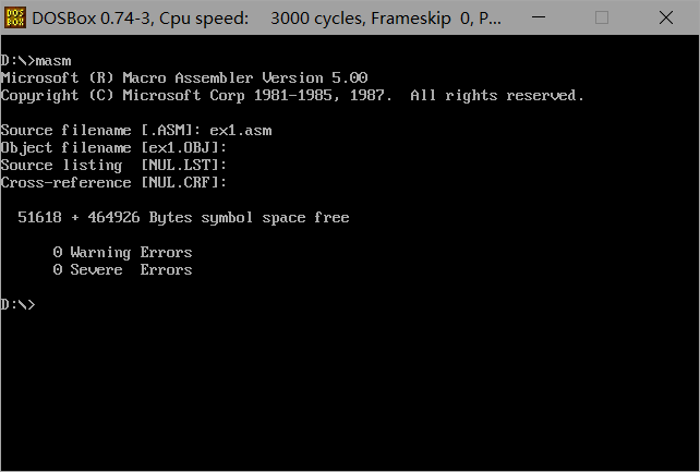 1、首先使用masm对*.asm文件进行编译,生成包含机器代码的目标文件(*.obj)