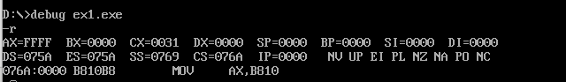 再使用u命令对ex1.exe进行精确反汇编,首先可以借助r命令: