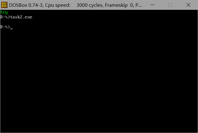 使用masm、link对task2.asm进行汇编、链接,得到可执行文件task2.exe,运行结果如下所示: