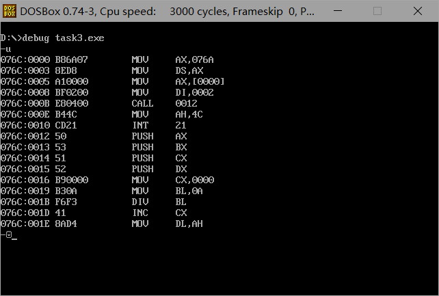 使用任意文本编辑器,录入汇编源程序task3.asm,源代码如下所示: