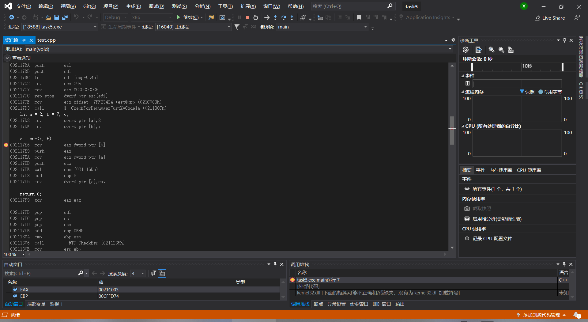 以上是主函数调用的反汇编过程,以下部分是调用sum函数的过程: