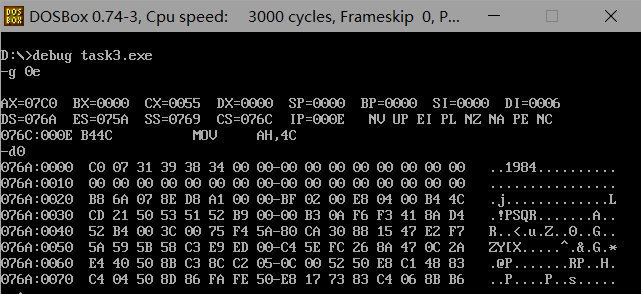 把task3.asm源代码中,line3中整数改成0~2559之间的任意数值,运行测试,结果如下所示: