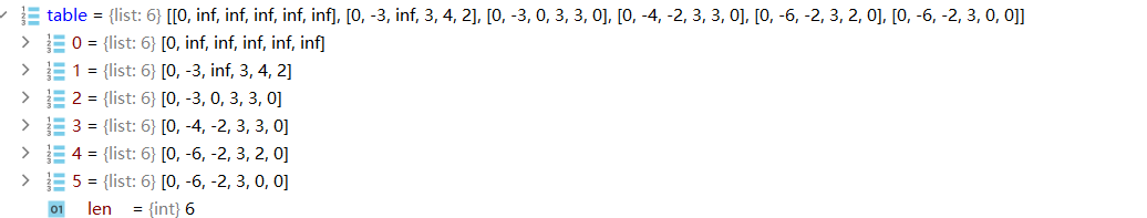 matrix = [[inf, -3, inf, 3, 4, 2],