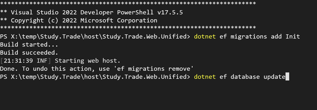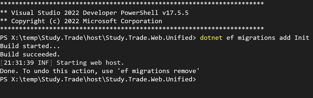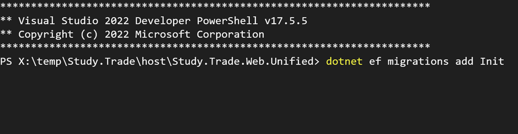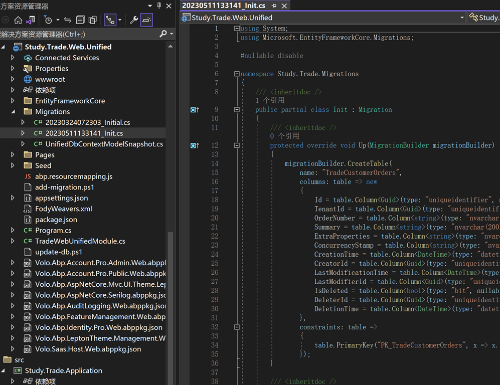在Study.Trade.Web.Unified的Migrations目录下,多了一个“时间戳_Init”的文件