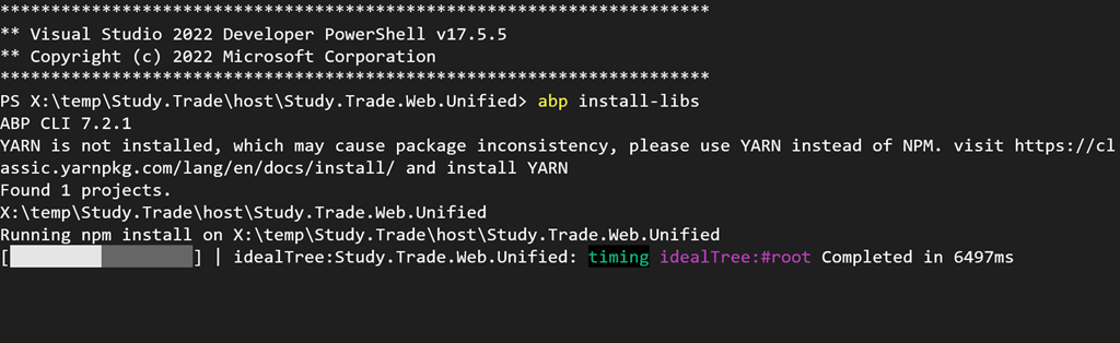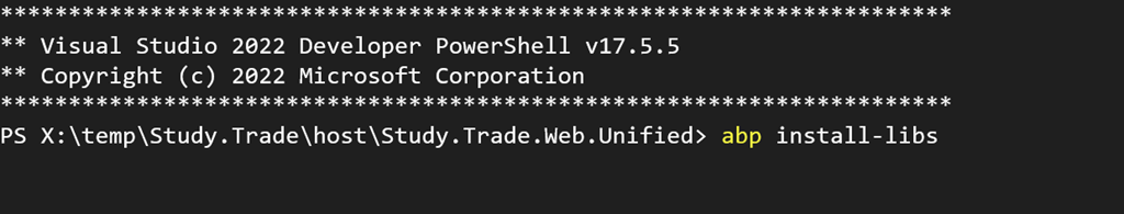 17、关闭所有Visual Studio的进程,再次打开解决方案,重新执行abp install-libs