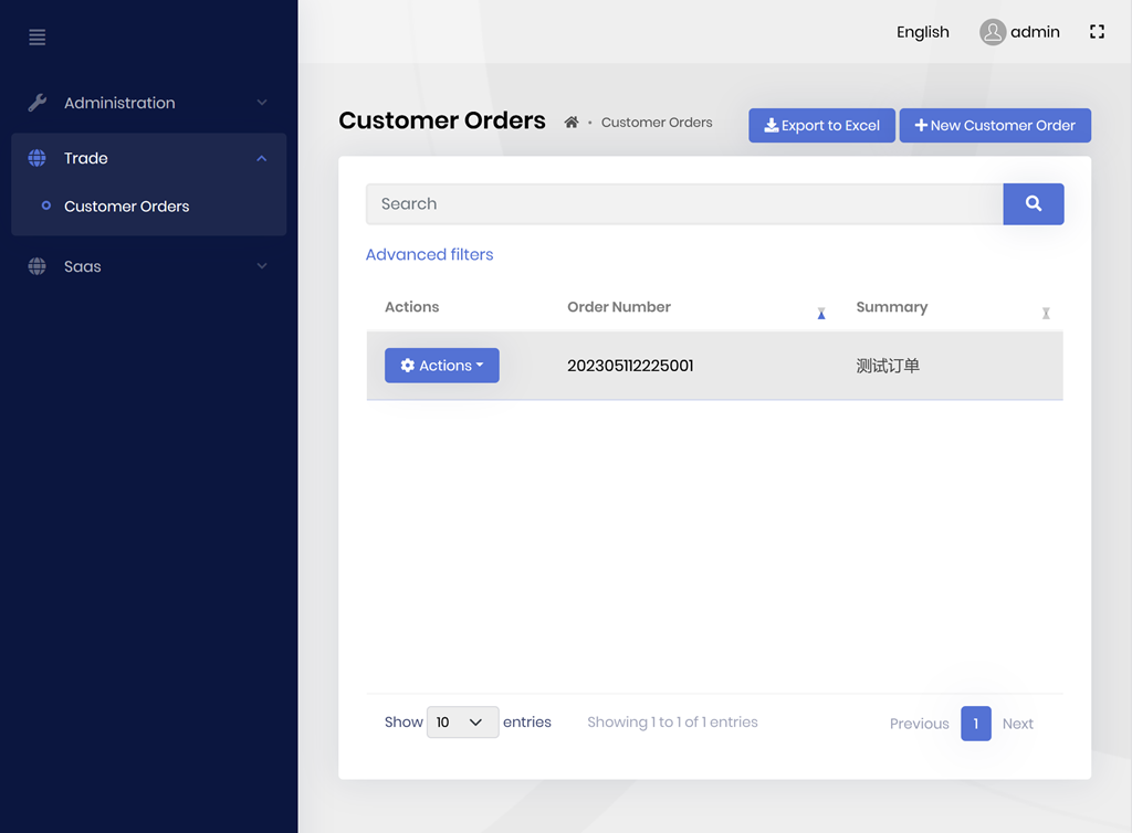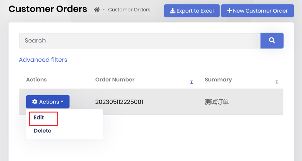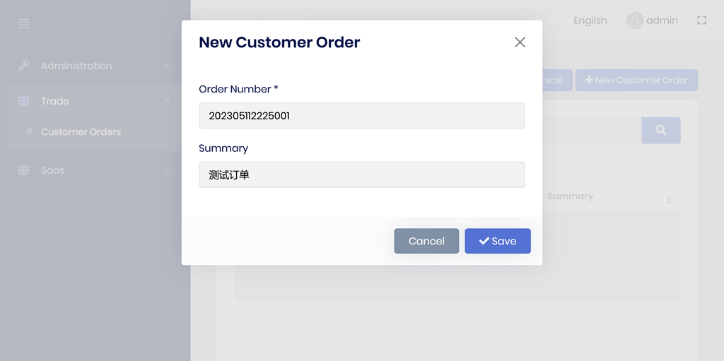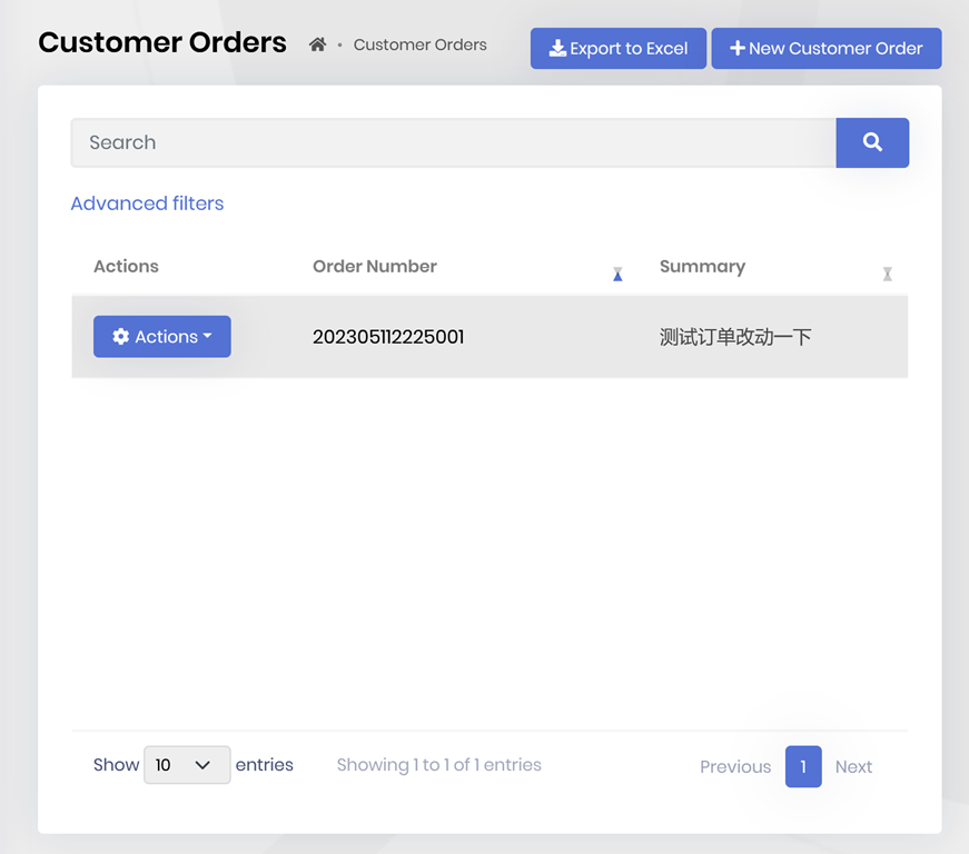 点右边的蓝色按钮“New Customer Order”,输入信息后点“Save”(你会发现订单号的长度被控制在15了)