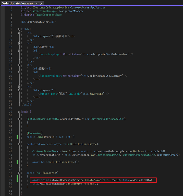 声明这个razor从TradeComponentBase继承,仅仅是为了直接调用ObjectMapper。