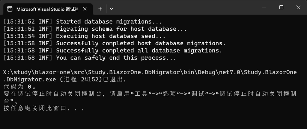 2)第二种更新数据库的办法,就是直接运行DbMigrator控制台程序