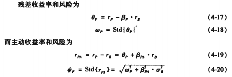 可以看到,主动收益率和主动风险包括残差收益率和业绩基准择时收益率,且当投资经理不考虑择时(即βP=1或者βPA=0的时候)的时候,主动收益率/风险就的等于残差收益率/风险。