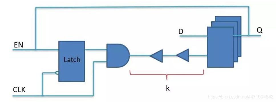 将一直翻转的时钟变为en有效才翻转的时钟,即将CLK转化为CLK_G。