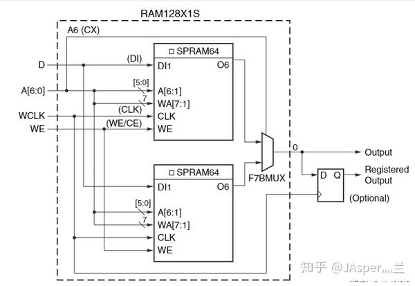 - 128 x 1 的单端口DRAM(占用2个LUT6+1个MUX)