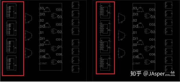有没有方法将LUT6里面的内容修改呢,有在XILINX 7系中,有两种SLICE。分别为SLICEL,和SLICEM。SLICEM 除了具备完整的SLICEL功能之外,它还具有写存储数据功能。结构决定功能,那么SLICEM与SLICEL是结构上存在哪些不同,我们通过图1进行对比一下。我们可以看到,两者只有红框里的LUT6是不同的,其他结构完全一样。