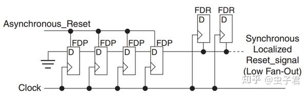 对于 FDR,我们可以不用考虑的。因为工具会分析 复位信号的 Recovery Time 和 Removal Time 来确保时序收敛。如果发现 Recovey Time 或者 Removal Time 的违反,我们可能需要看一下 reset tree 或者 clock skew。一般都是 Recovey Time的违反,类似于 Setup Time,可能是由于 reset path的延迟太长导致。