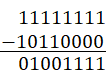 第三步,将结果加1,再减去100000000就得到1001101,就等于十进制数的77。