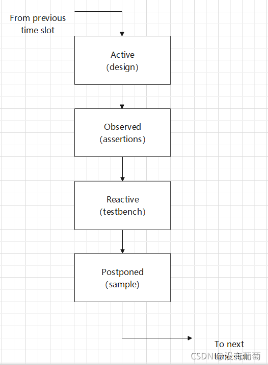 注意时间不是单向地向前流动——Observed和Reactive区域的事件可以触发本时钟周期内Active区域中进一步的设计事件。这也是为什么时钟发生器不能放在程序块之中,因为这会引起竞争,clk信号和测试平台的输出信号都从Reactive区域开始传递,在Active区域进入设计,所以时钟发生器应该放在一个模块之中。