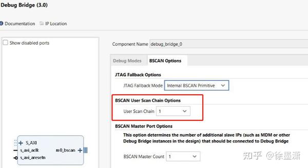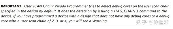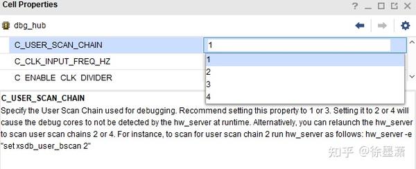 User scan chain 用于检测debug core。类似与通道的概念,默认是1 , 设置成其他的可能是xilinx 内部调试用,或者以其他方式调用, 如下图所示。
