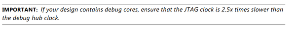 Jtag 的时钟要比 Dbg hub的时钟慢2.5 倍。因此如果实在不能达到次条件的话,需要手动修改Jtag 的时钟频率。