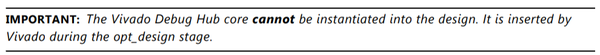 Vivado 在综合后的 opt_design 阶段自动产生的 不能手动例话。正常情况下会自动分配到一个已有时钟上,如果自动分配的时钟没有没有正常运行,那么Debug hub 就无法被识别。如果系统没有系统时钟,可能就会分配到GND。
