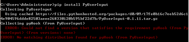 执行命令:pip install E:\pyHook-1.5.1-cp36-cp36m-win_amd64.whl