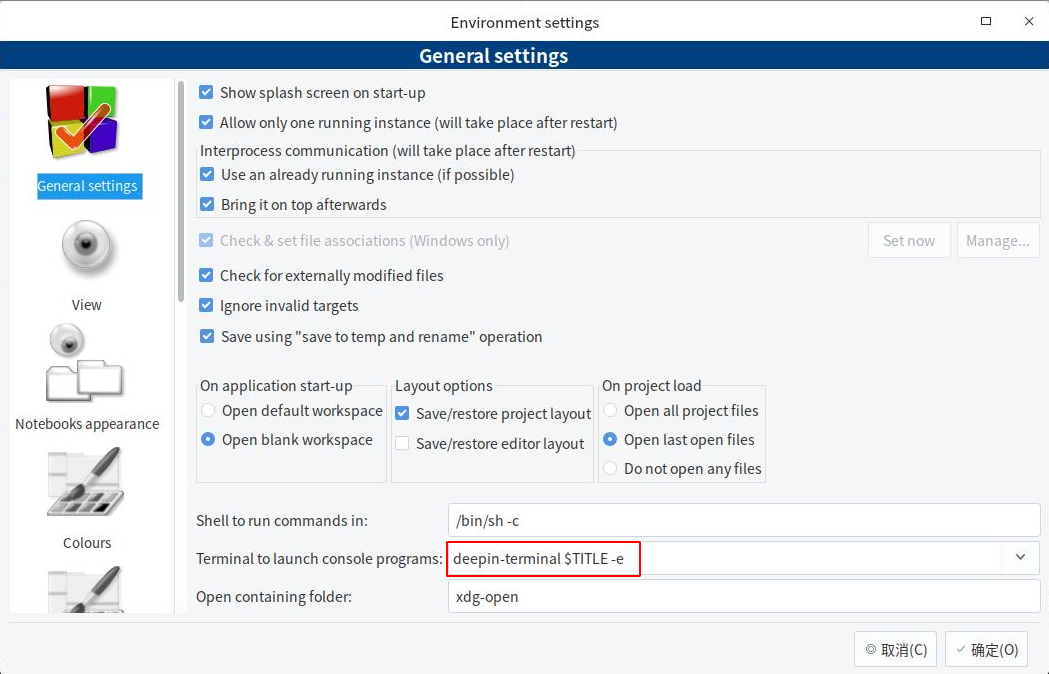 统信UOS(deepin)更改Code::Blocks的输出控制台(内附汉化包)