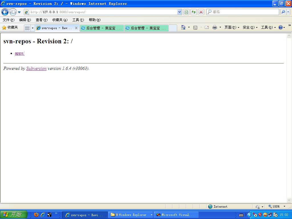 apache 和 svn 一起工作的截图 == 我配置的apache使用的端口是 8080