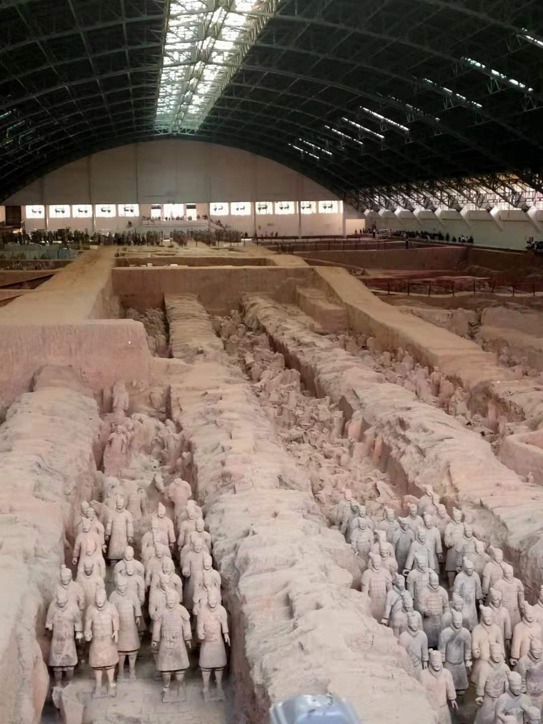 通过语音讲解又了解到兵马俑的发现过程,上世纪60年代末,西杨村的村民杨得济在挖井选址时发现了一颗粗壮的柿子树,判断此树下水源一定很充足,一挖便有了地下的“百万雄师”。据说当年兵马俑的发现者西杨村的村民杨得济,更是被奉为神明,享受着终生国务院待遇。