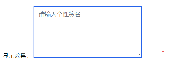 <!-- name属性表示表单元素的名称,placeholder属性表示表单元素的占位文本 --> <textarea name="sign" rows="5" cols="30" placeholder="请输入个性签名" ></textarea>