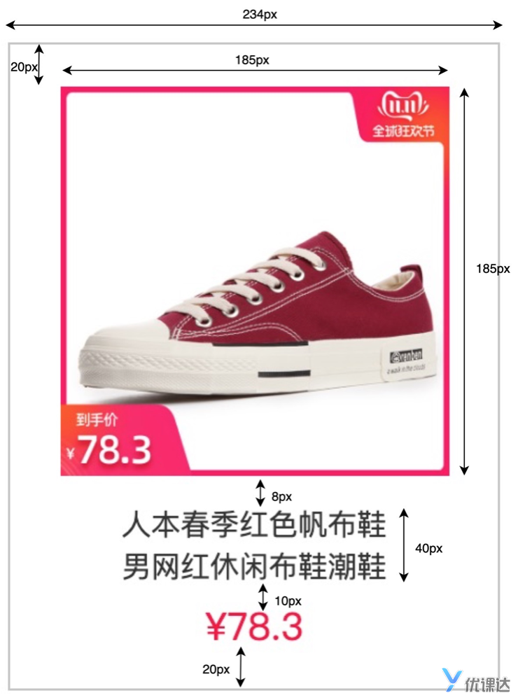 <!DOCTYPE html> <html lang="en"> <head> <meta charset="UTF-8"> <title>Document</title> <link rel="stylesheet" href="index.css"> </head> <body> <img src=" https://gw.alicdn.com/bao/uploaded/i1/749716436/O1CN01OSPWqa1xPjeErSSzf_!!749716436-0-pixelsss.jpg"> <div class="introduce">人本春季红色帆布鞋男网红休闲布鞋潮鞋百搭运动小白鞋子男运动鞋</div> <div class="price">¥78.3</div> </body> </html>