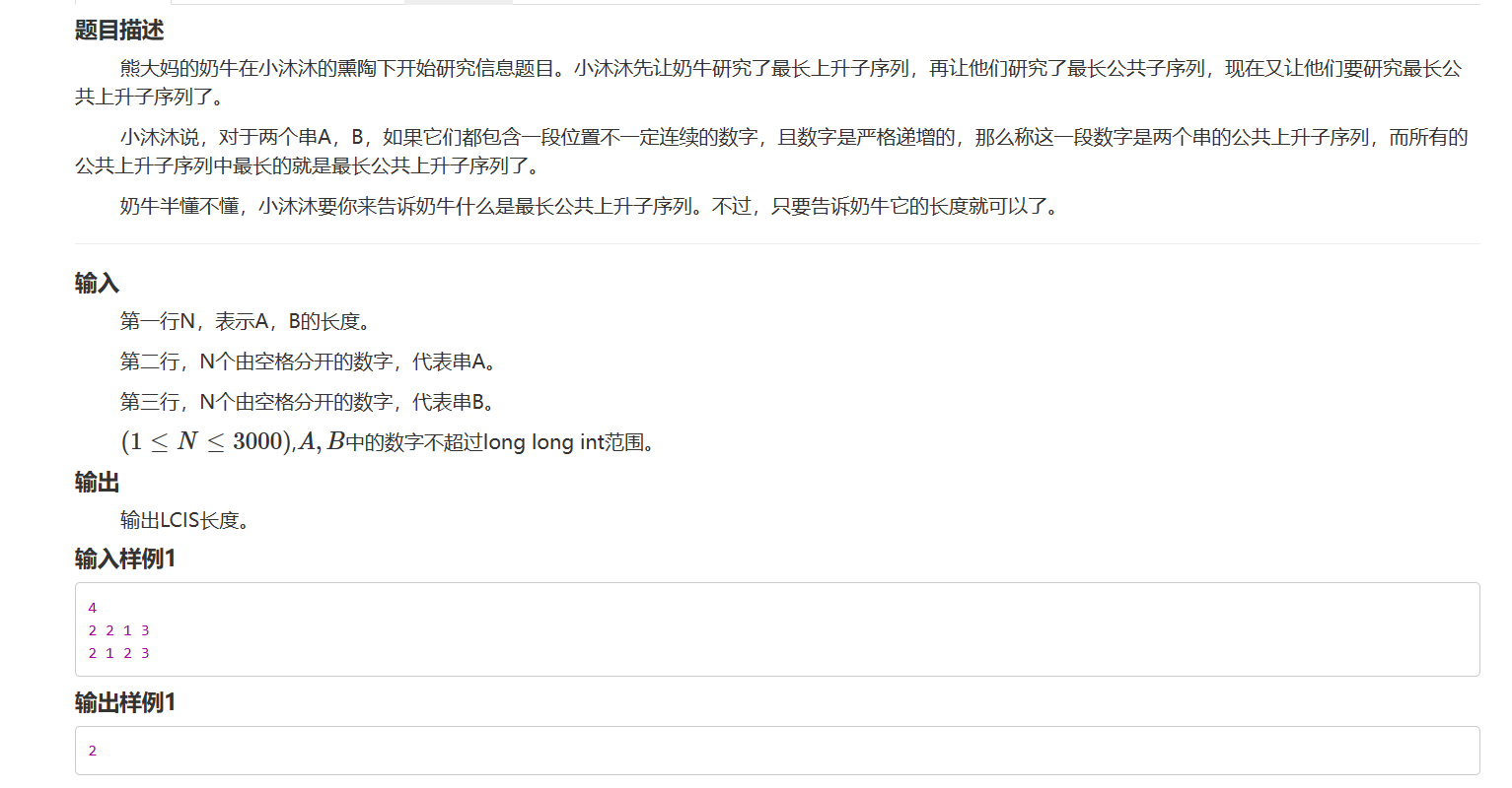 HZOJ 最长公共上升子序列 动态规划