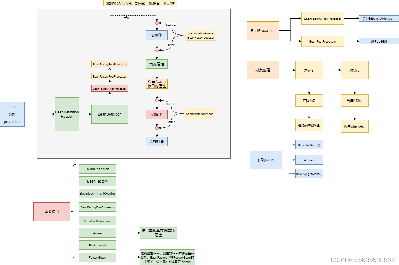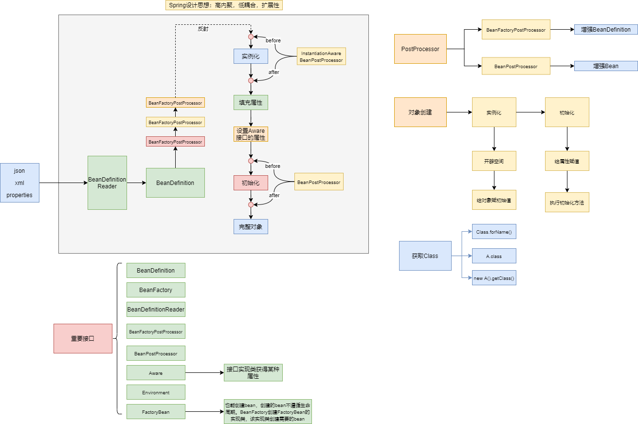 Aware:感知接口,xxxAware接口,一般表示关注、关心xxx属性,实现xxxAware接口,就可以得到相关属性,比如BeanNameAware,可以获取bean名称