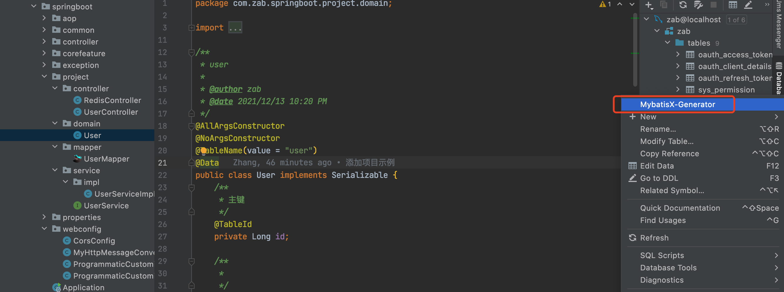 博主用的idea插件生成的代码,MyBatisX。自动生成代码的工具有很多,大家可以自行选择自己喜欢的。