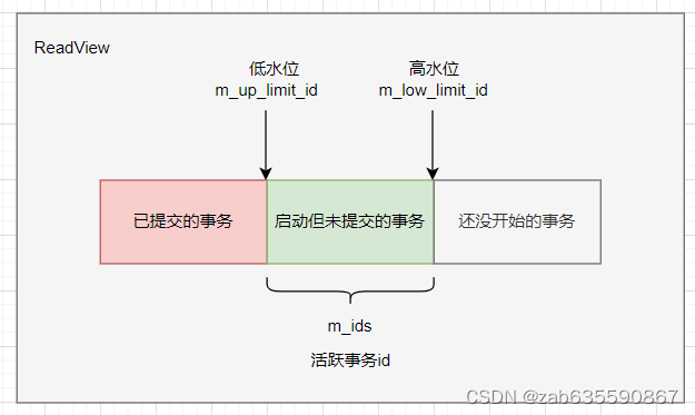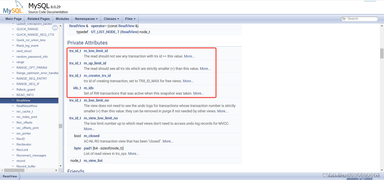 Read View在mysql源码中是一个class,有多个字段,其中以下四个是核心字段