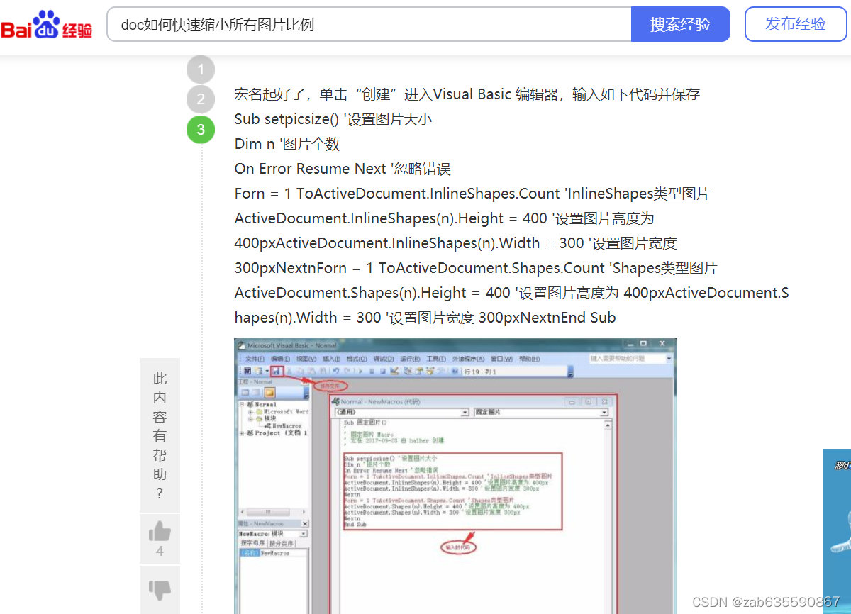 ActiveDocument.InlineShapes(n).Width = 300 '设置图片宽度300 px