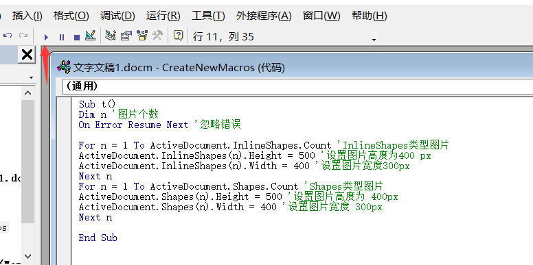ActiveDocument.InlineShapes(n).Height = 400 '设置图片高度400 px