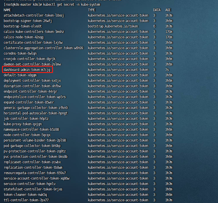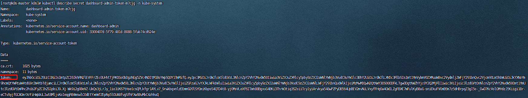 kubectl describe secret dashboard-admin-token-jgpsv -n kube-system