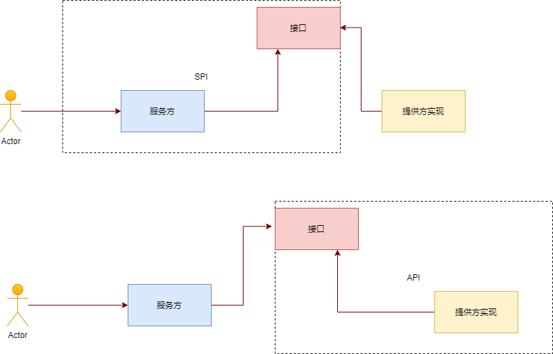 SPI由调用方定义接口,提供方来实现。(自己调自己定义的接口,自己定义,别人实现)