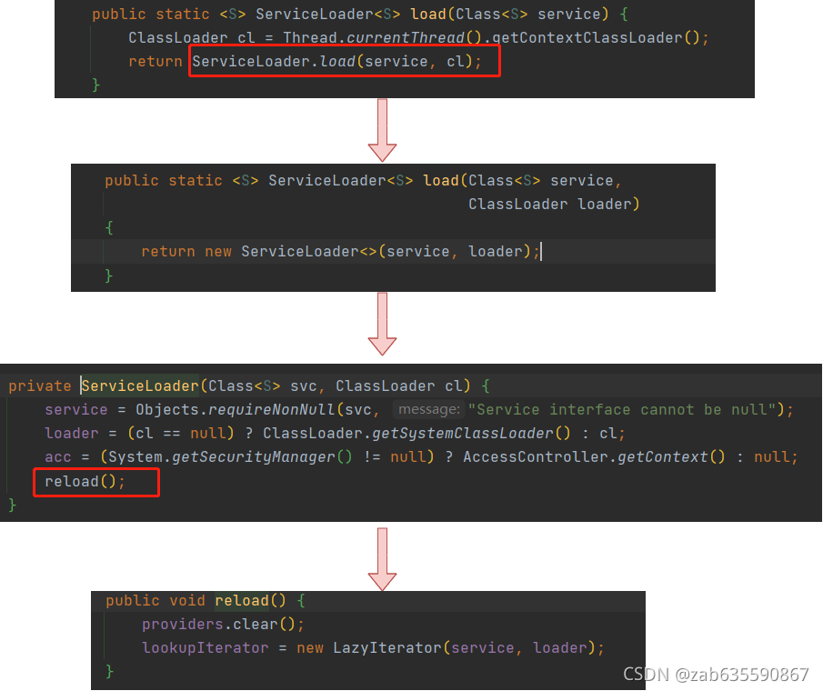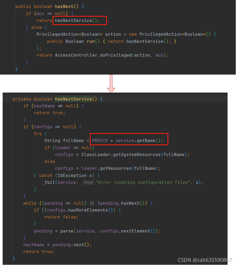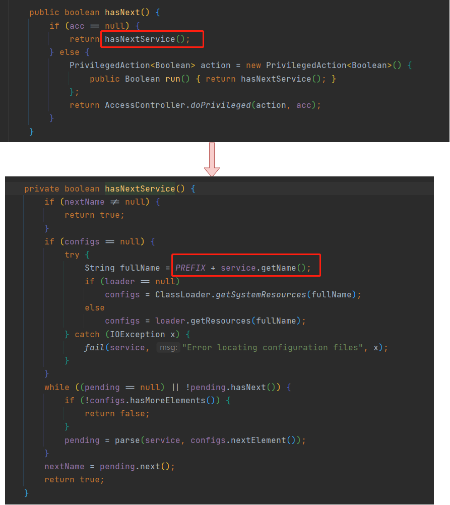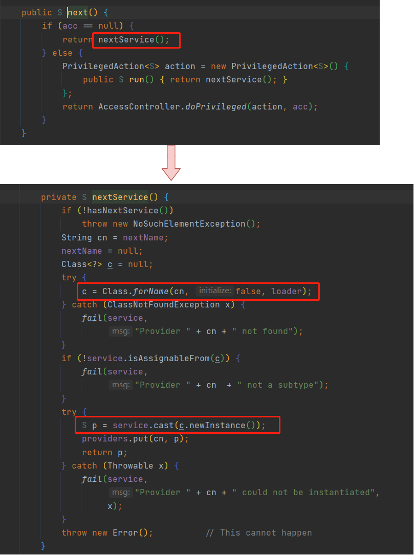 通过ServiceLoader.load(ISearch.class),定位到一个LazyIterator,ServiceLoader的hasNext和next方法都被重写过。