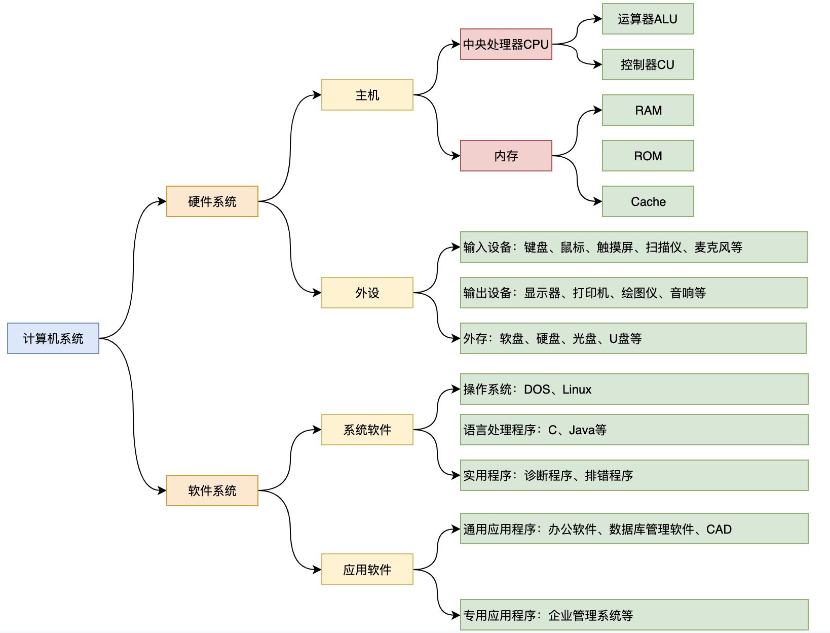 一个完整的计算机系统包括:硬件系统和软件系统,如下图所示