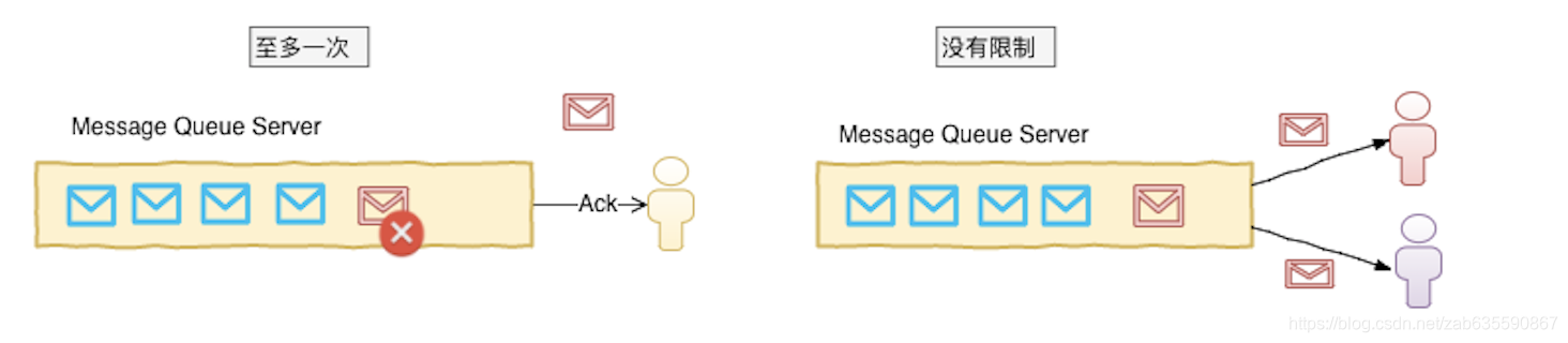 消息生产者发完消息后,该消息可以由多个消费者同时消费,并且同一个消费者可以多次消费消息服务器的同一个记录