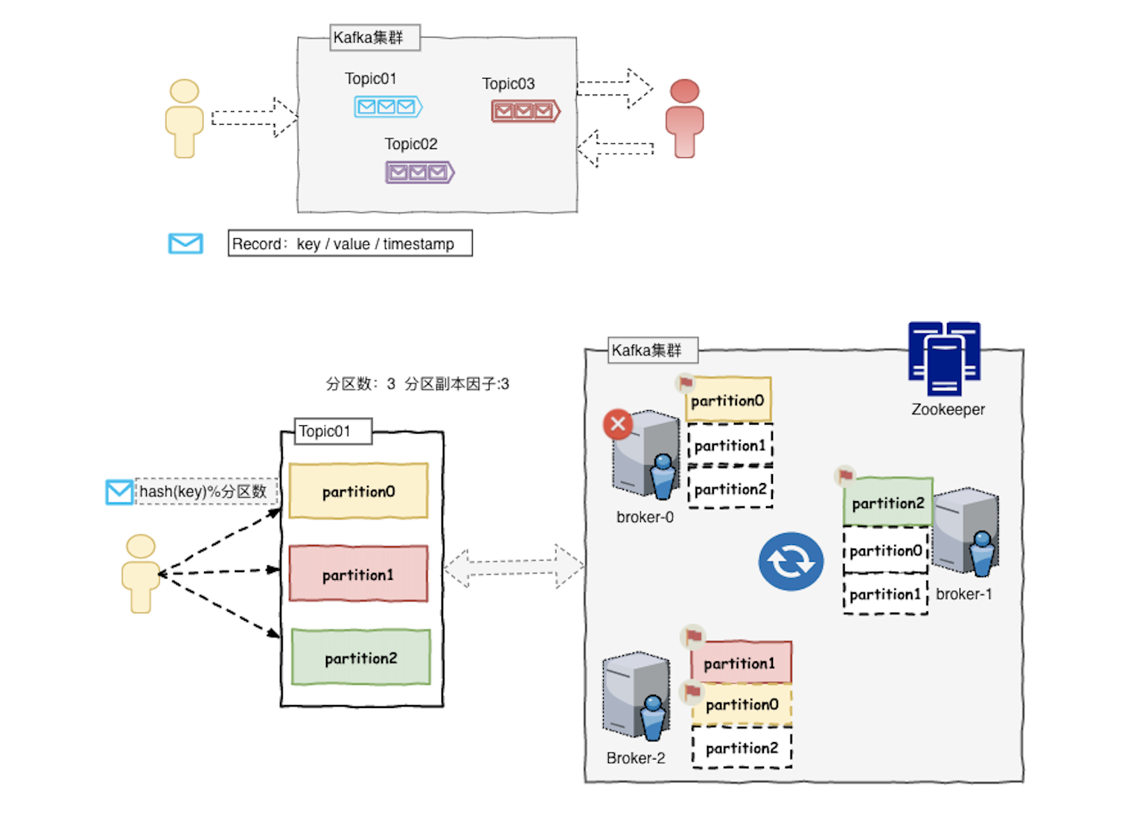 同一个broker可能是某分区的master,但是也有可能是另外分区的follower,也就是说身兼数职。