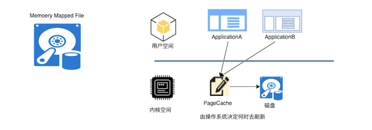 - kafka采用了MMAP(Memory Mapped Files),它的工作原理是直接利用操作系统的Page实现文件到物理内存的直接映射。减少了内存到磁盘的IO操作。