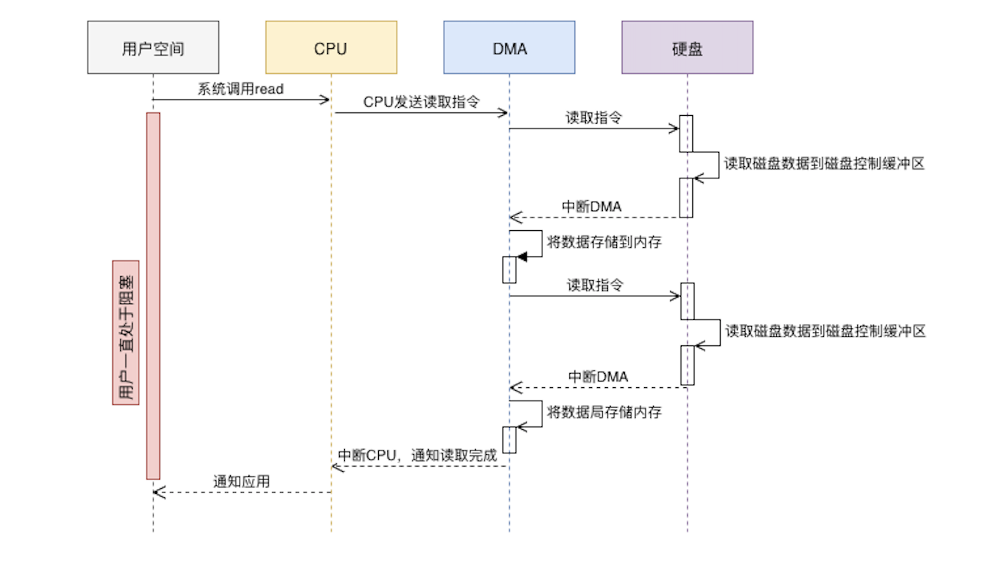 有了DMA,CPU可以专注于其他计算,而不是浪费性能在IO拷贝上。